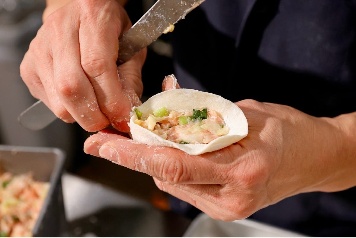 十勝の新鮮な野菜をふんだんに使い、職人が心を込めて手作りした皮で包まれた、贅沢な餃子です。